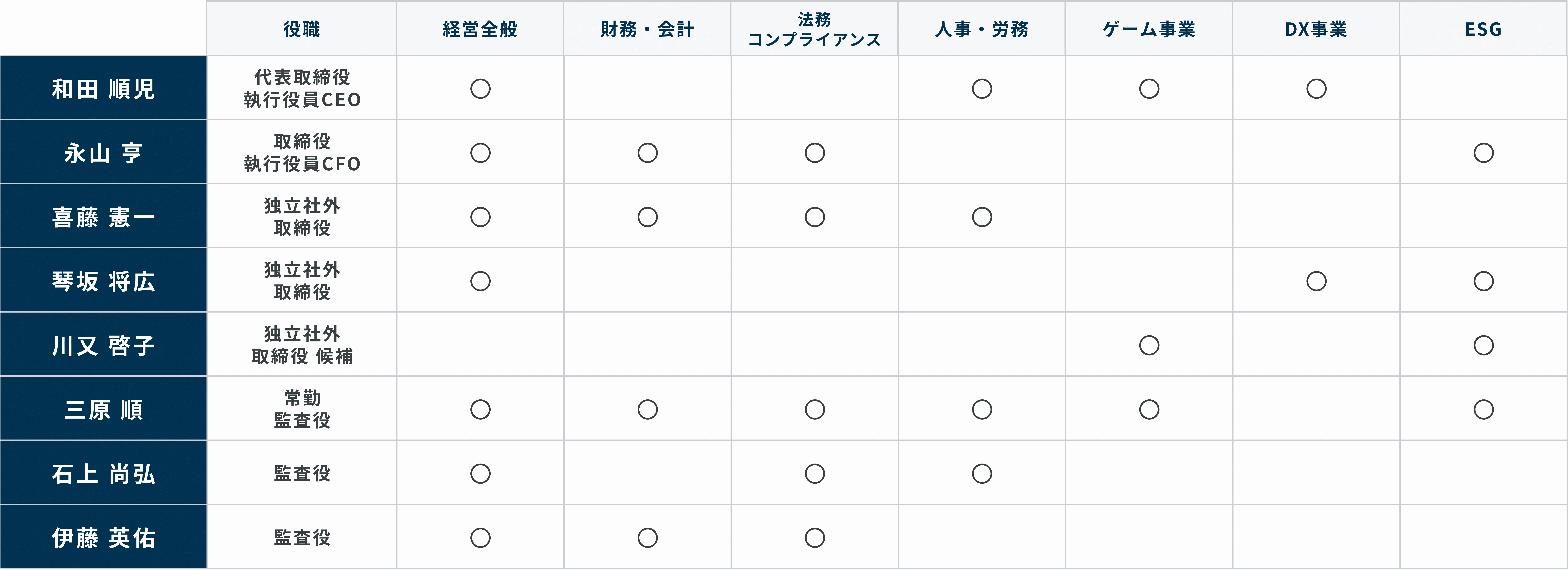 取締役・監査役のスキルマトリクス