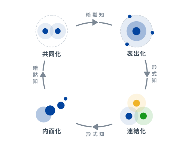 フロー体験を創り出すために、個人が持つ解釈やビジネス思想、チームマネジメント、専門知識を共有し、社内にドキュメント・アセットを蓄積することで、だれでも学べるフラットな文化が構築されています。アピリッツは学習の循環を大切にするSECIモデルを推進し、様々なプロジェクトで実践することで、人の成長につなげています。